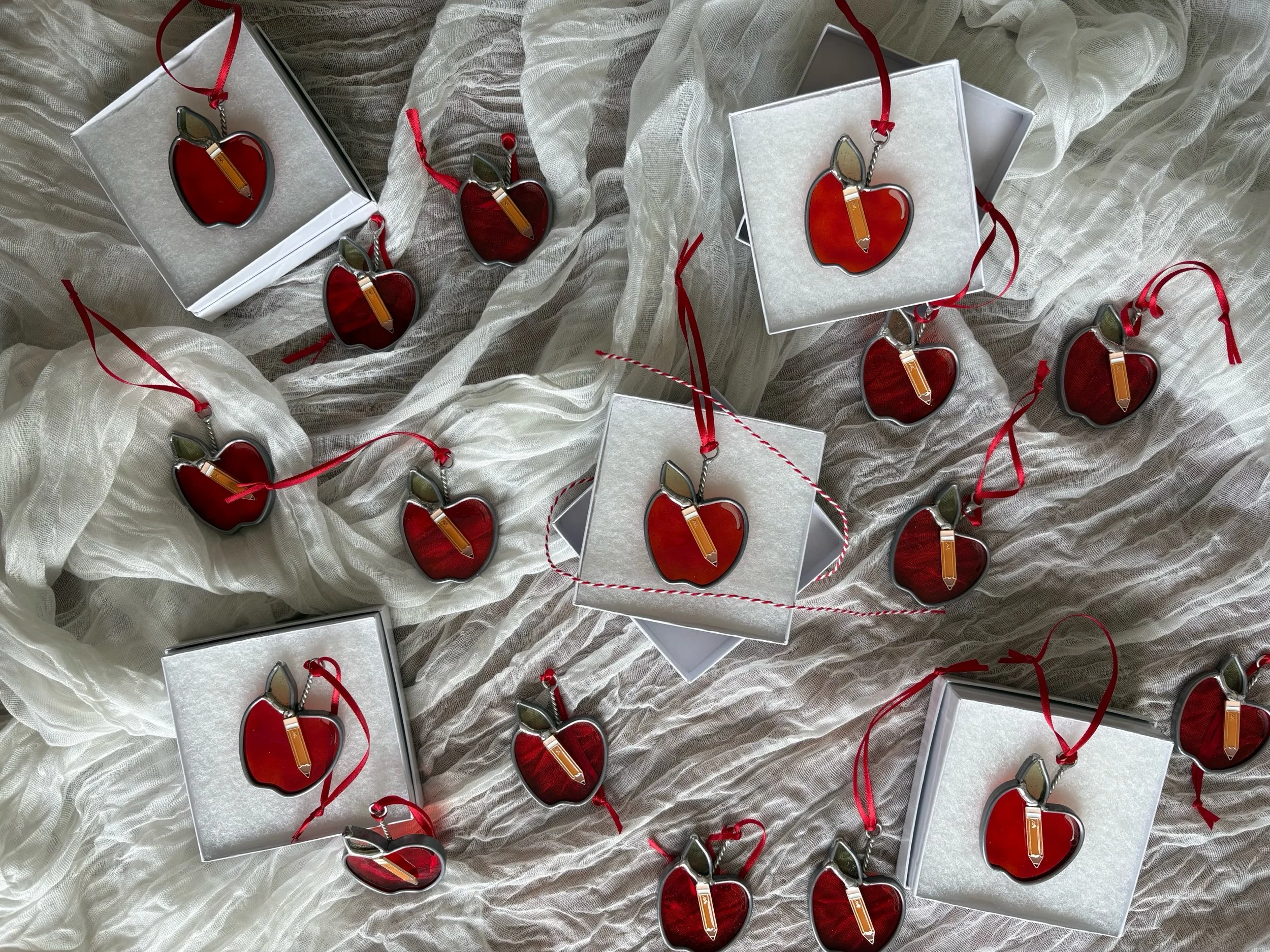 Image 1 of 3 Image 2 of 3 Image 3 of 3 Teacher Appreciation Apple Ornament $25.00 SOLD OUT Please note that this product contains lead SOLD OUT Added! Please note that this product contains lead